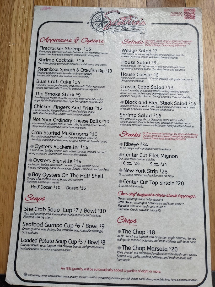 At Scotties, you'll find a delightful array of dishes that cater to every palate. Start your meal with the exquisite Shrimp Salad or Bay Oysters served with a house-made mignonette. For the main course, the filet mignon is a standout, praised for its tenderness and flavor, particularly when dressed with the Oscar topping. Don’t miss the hearty loaded baked potato or the rich steakhouse creamed spinach as sides.